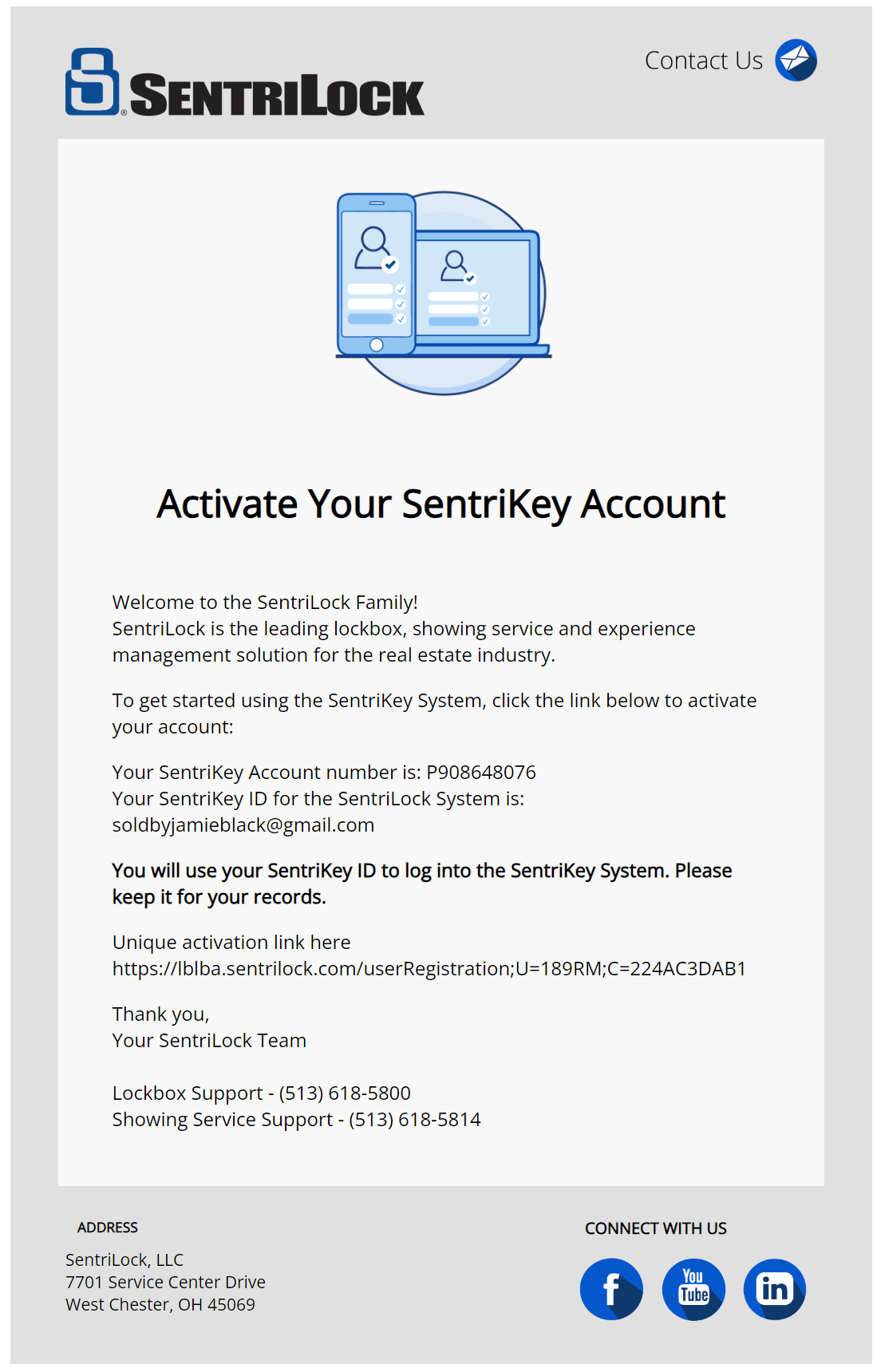 Don’t forget to activate your SentriLock account today! On Friday, March 13th, all existing eKey users were sent an account activation email by SentriLock. An example of the email is included below.