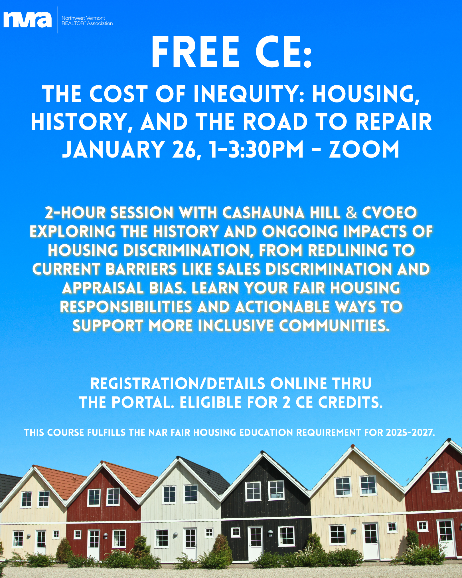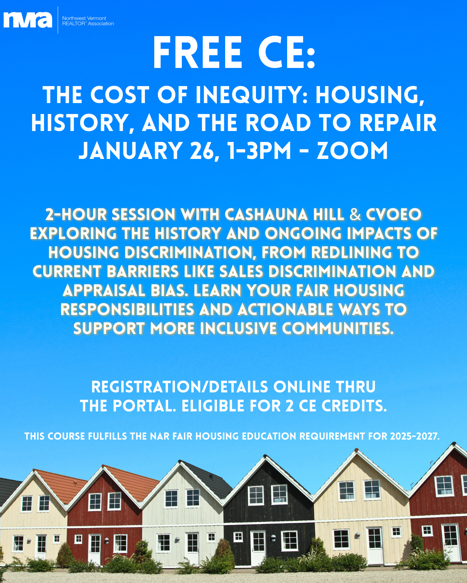 This 2 hour training, led by Cashauna Hill of The Redress Movement, explores the history and ongoing impacts of housing discrimination in the United States. Participants will learn how policies such as redlining and urban renewal shaped today’s communities, and how the Fair Housing Act was designed to address these injustices. The session will highlight current barriers to Black homeownership, including sales discrimination and appraisal bias, while connecting these challenges to wealth and equity gaps. Attendees will leave with a deeper understanding of housing history, fair housing responsibilities, and practical ways to promote more inclusive communities. This course fulfills the NAR Fair Housing Education requirement for 2025-2027.
