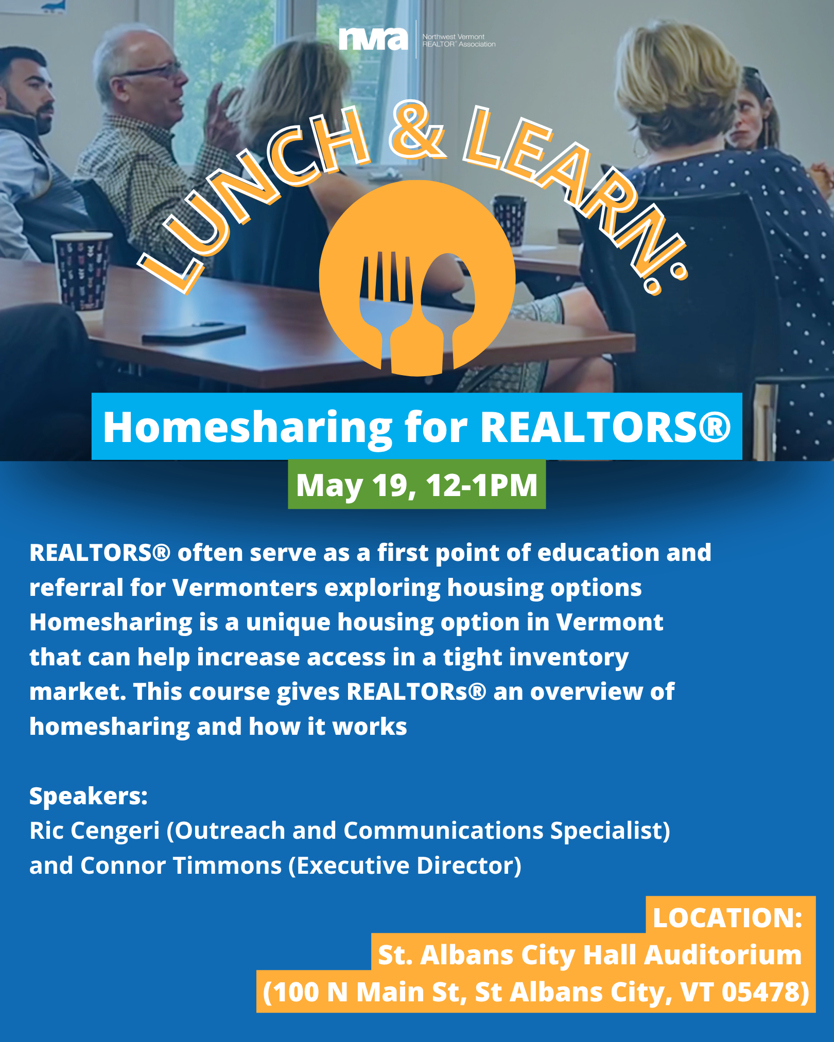 While REALTORS® predominantly work with people looking to buy and sell their homes, they are often the first line of education and referral for Vermonters who are considering all their options. Homesharing is a unique type of housing available in Vermont that can increase housing access across the market where inventory is tight. This course will provide REALTORS® with information about homesharing and how it works.