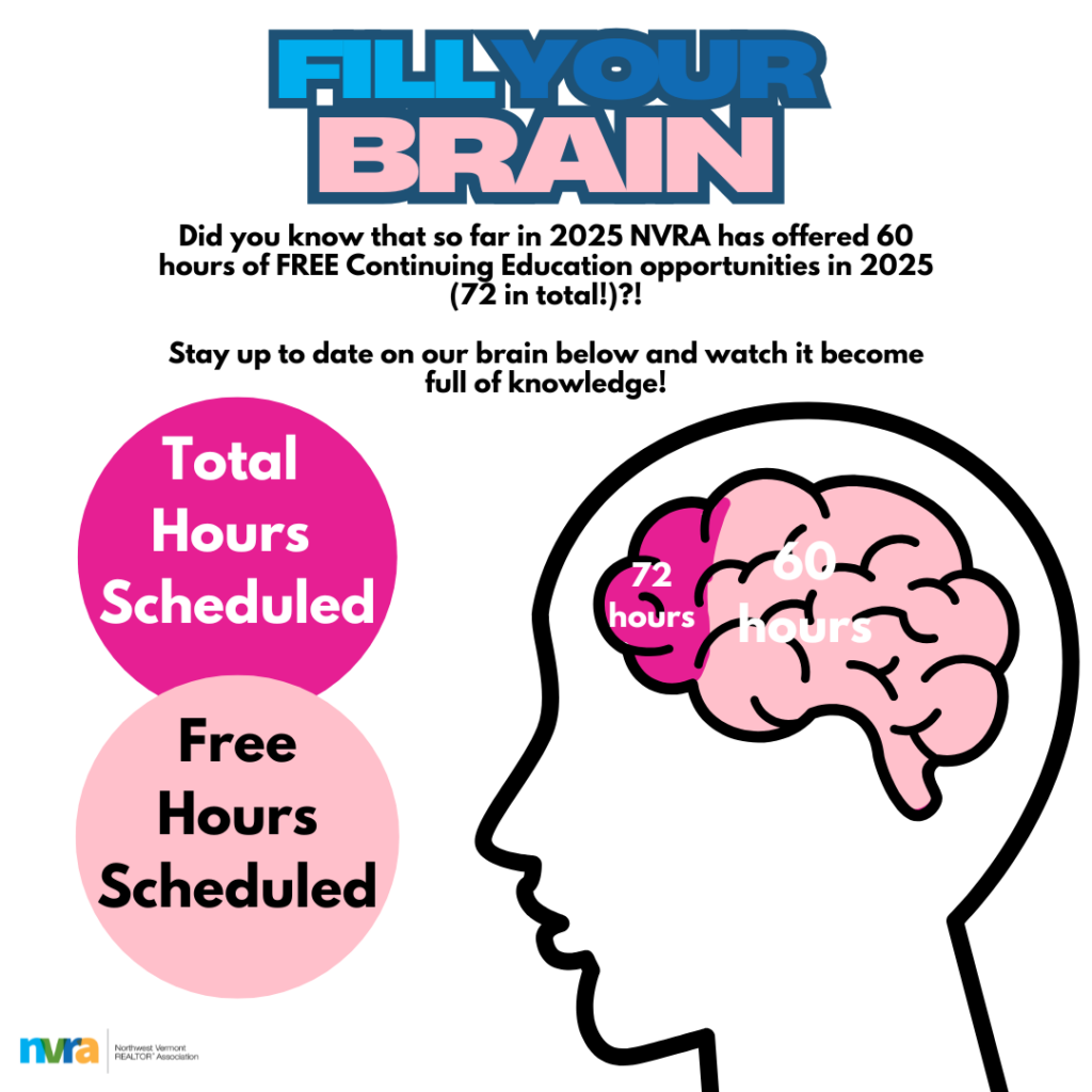 Within 90 days of the issuance of your license, you must complete 8 hours of instruction addressing topics specified by the VT Real Estate Commission. NVRA’s New Agent Orientation plus the NAR Code of Ethics Course fulfills these hours and are free for NVRA members.